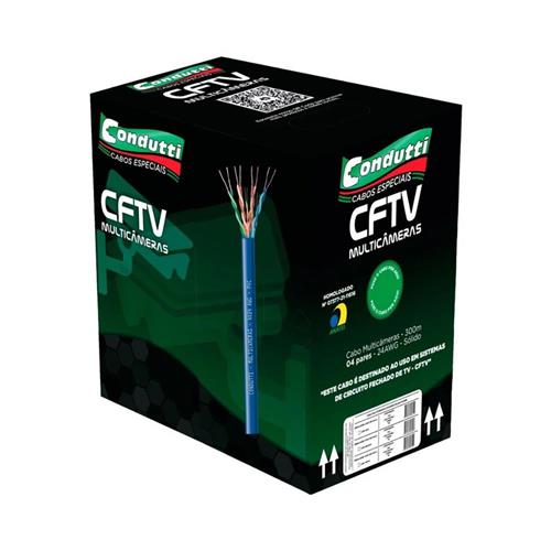 O cabo Multicâmeras 4 Pares Condutti é ideal para instalações de sistemas de CFTV, oferecendo 300 metros de comprimento e quatro pares de condutores torcidos que proporcionam excelente desempenho na transmissão de vídeo e energia. Fabricado com condutores em alumínio cobreado (CCA) e isolação em polietileno de alta densidade (PEAD), o modelo conta com capa externa em PVC azul anti-chama, garantindo durabilidade e segurança em aplicações residenciais, comerciais ou industriais. É compatível com câmeras analógicas e HD que utilizam vídeo balun, oferecendo instalação prática e sinal estável.