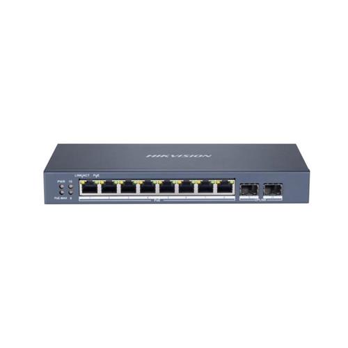 Switch de rede Hikvision DS-3E1510P-SI, 8 portas Gigabit PoE + 2 SFP, 110 W, Metal
