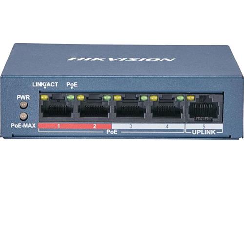 Switch Hikvision DS-3E0105P-E/M(B), 4 Portas, PoE, Fast, Metal, Azul